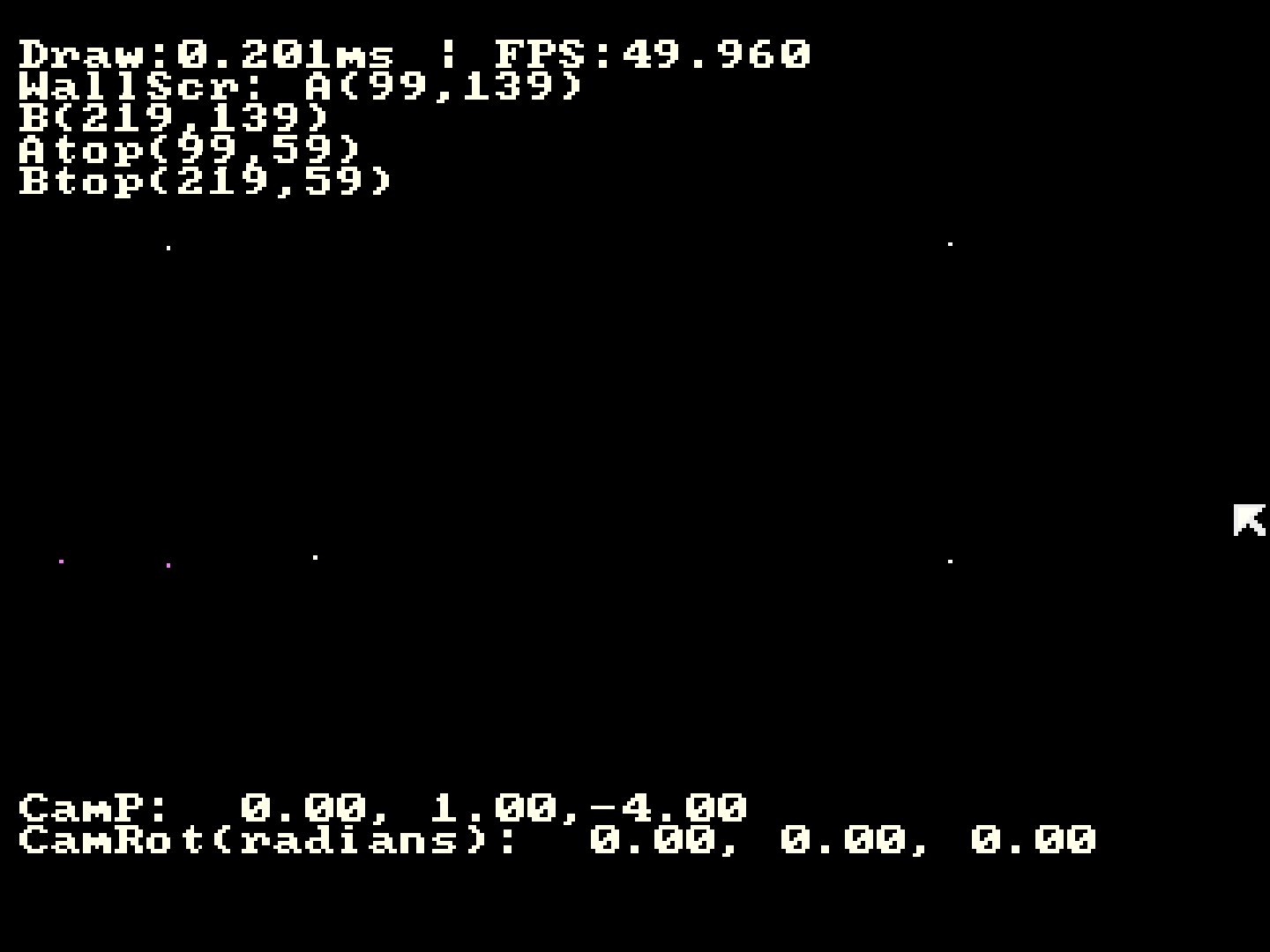 During this transition I encountered a subtle but highly disruptive failure mode: projected wall vertices occasionally exploded to extreme values, wrapped around the screen, or collapsed into inverted configurations. At first this looked like a coordinate-system bug, but world-space and camera-space transforms were fully correct.